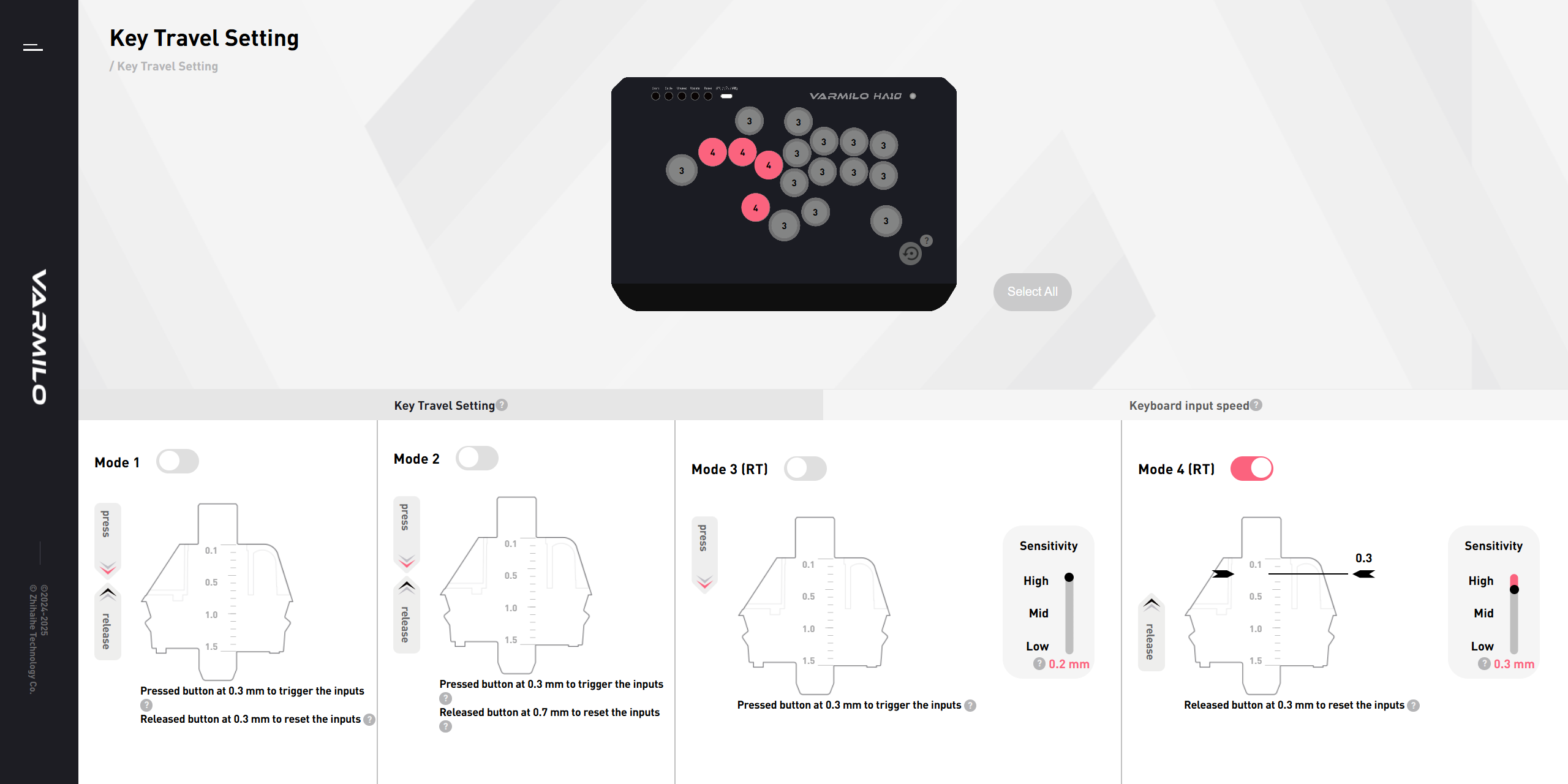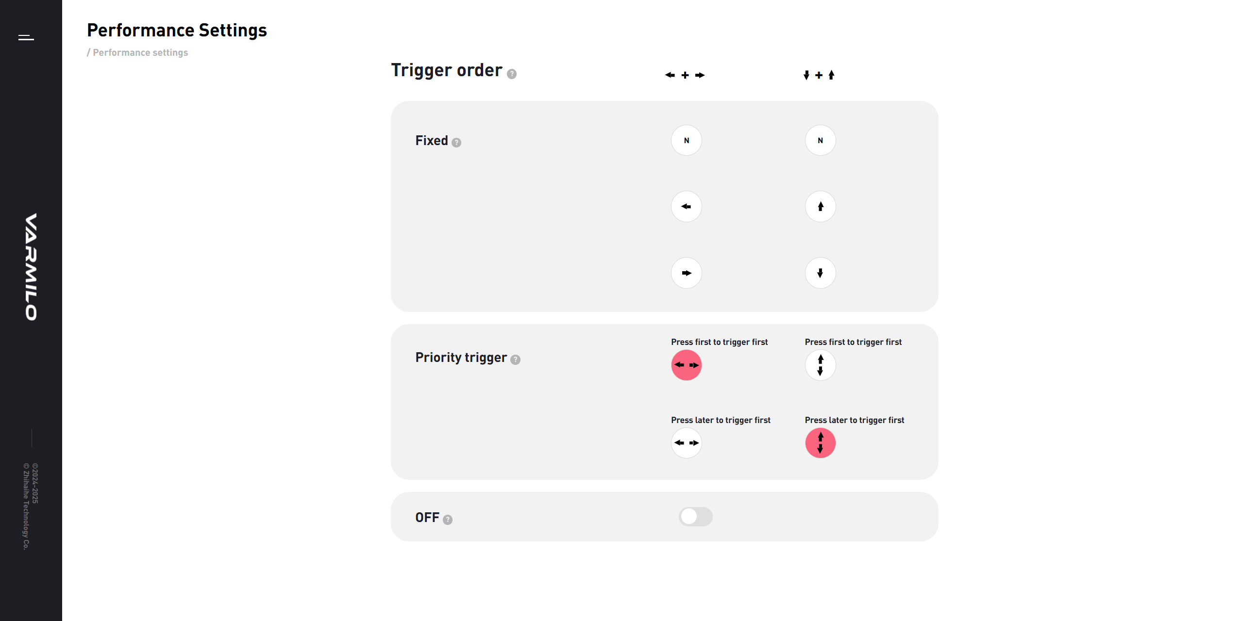 This controller allows you to change the actuation point to your preferred position, so try to find the setting that is most comfortable for you.