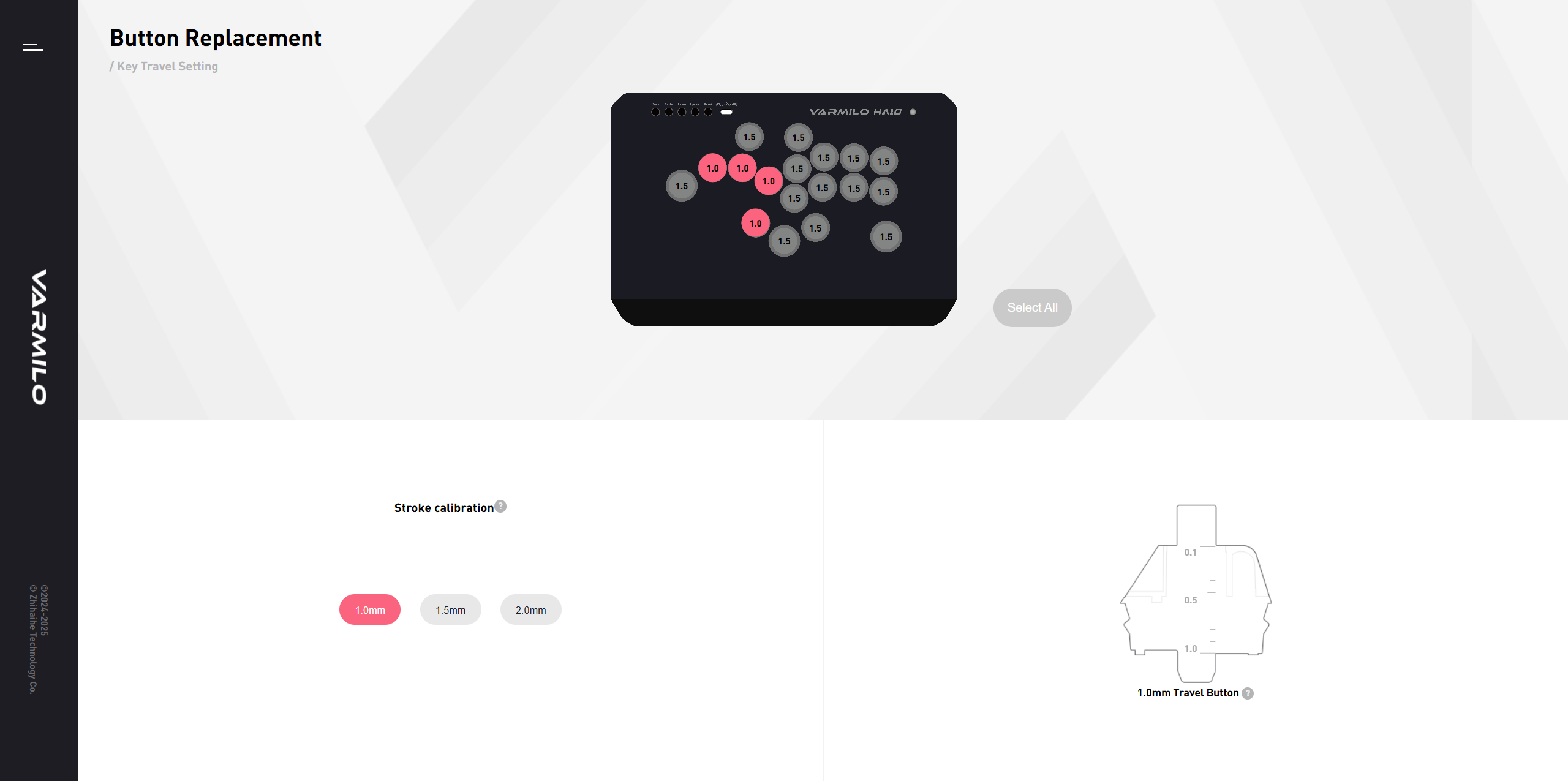 There are 1.0mm and 2.0mm physical travel buttons available.