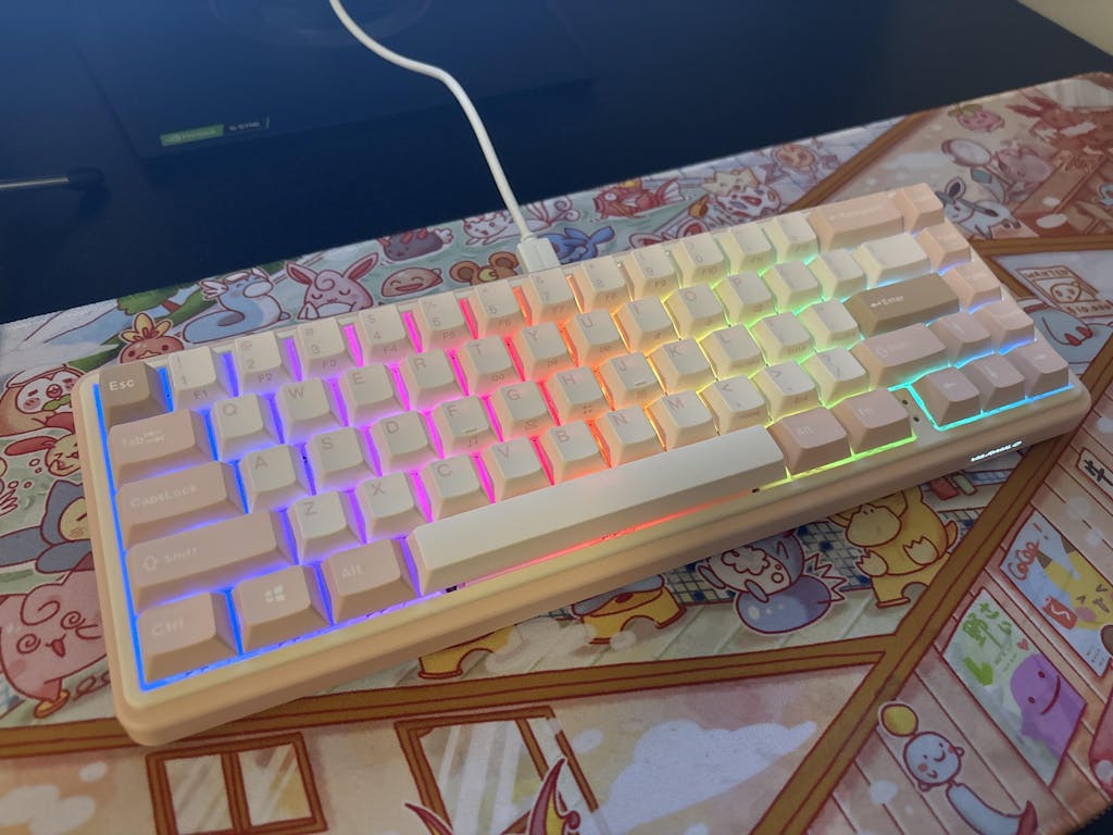 I love how quiet my silent keyboard is. The latte is cute, and I also like how I can change the back lighting. One issue I noticed is that my computer keeps showing that the keyboard is low battery when it's not. Even when it's fully charged, the icon still says low battery. I just ignore the low battery notification. The 65% is perfect for me, I can put it away when not needed and there's also more room on my desk. It also came with extra keycaps so that I can make all the keys the same color.